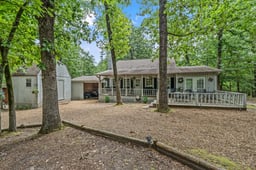 Immaculate and impeccably maintained home on a lovely wooded lot in highly sought-after gated community of Holly Lake ranch. This home has been gently lived in as a weekend retreat since 2004. The lot is gorgeous and backs up to a greenbelt area, so no homes visible behind, just wooded bliss. You can take in all of the natural beauty that Holly Lake has to offer from the covered front porch or open decks in front and back. Inside you will note the lovely wood-look laminate flooring, the well appointed brick fireplace with built in cabinetry on either side. The kitchen has room for breakfast table and opens to a huge sunroom that could also be used as separate dining. Both bedrooms are spacious with ensuite baths and walk-in closets. Plenty of outside storage in the storage building and oversized carport. This home is in impeccable condition and ready for your move-in. HVAC new 2024. Refrigerator, washer and dryer convey. Most furnishings negotiable. Holly Lake Ranch is a gated, resort community with 24-7 on-site security, lakes for fishing and watersports, 18-hole golf course, 8 pickleball courts, 3 tennis courts, swimming pool, fitness center, walking trails and much more.